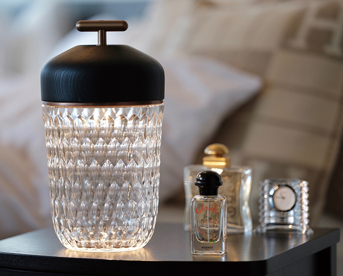 『サンルイ』のポータブルランプは、柔らかく上 質な光が魅力。読書時間がより豊かになります。